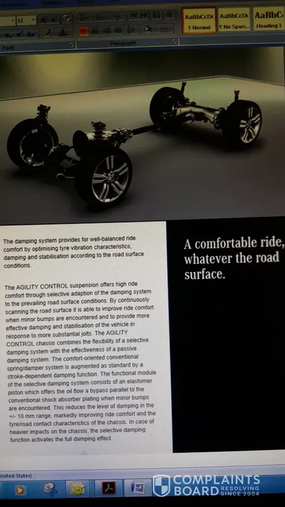 The steering problem remained and in March 2016, the problem was again reported on Mercedes Benz SA website that referred the matter to Orbit Century City. Arrangements were made for the 2nd March with the Customer Relations Manager, Marcelle Krapf for a test drive. The vehicle was driven by the technician and me and my problem was identified. I was told that the problem could be a characteristic of the vehicle due to the different size tyres front and rear, but the test drive was too short to identify the dynamics of my problem. The vehicle was visually inspected in their workshop while I was waiting and was informed that nothing could be seen that was wrong. No tests were done on test equipment to check the alignment, shock absorbers or suspension. We both agreed that this was not suitable for such a premium vehicle and I requested that this be escalated to MBSA technical department. This was confirmed by Marcelle Krapf, that it would be escalated. I also escalated to MBSA.