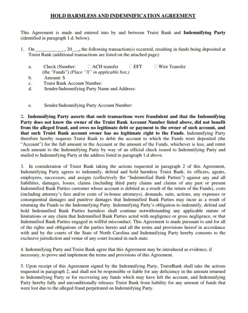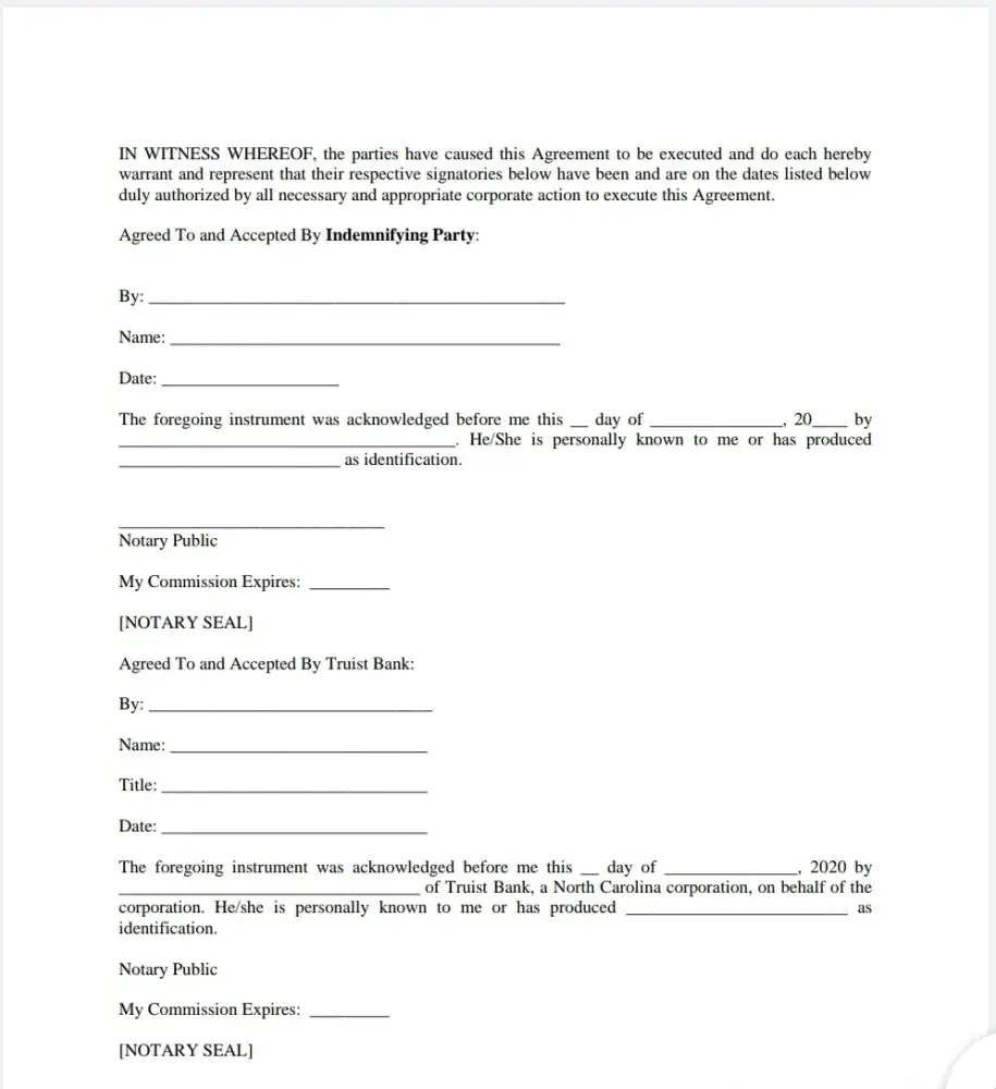under my permission at SunTrust Bank as she was not aware that she could not have certain activities and/or amount of transaction going into a personal account and the account will be closed. Please see below email and attached Hold Harmless/Indemnification form is what SunTrust will need from MetaBank on letterhead in order to reverse the money back to MetaBank account that has been on holds incentives Feb 2020. Please assist and send this to dwilliford@nccob.gov and thomas. faris@suntrust.com.