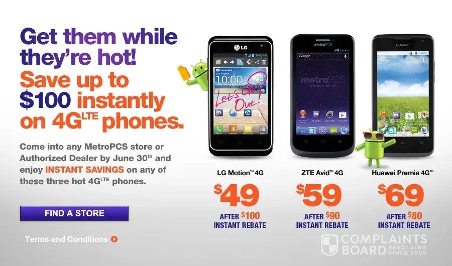 Metro PCS will not honor rebate. Bought phone at the end of January submitted rebate form with UPC Code and pat of Package with other numbers and did not receive a reabte. Wrote to them went back and forth for months and still no rebate. The company just reverts messsages to the place where you purchased the phone and they cant do anything and then asks you...
