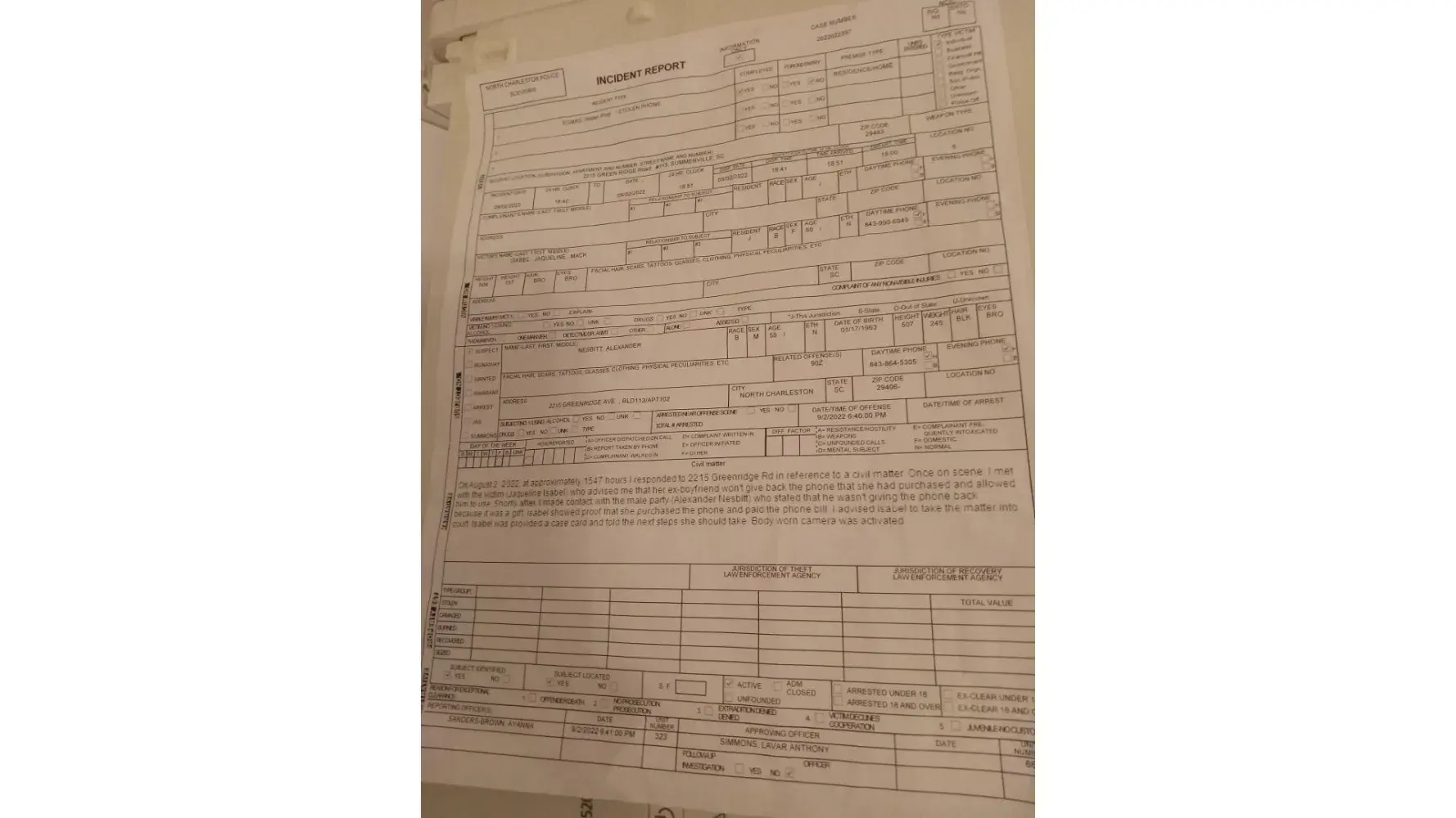 On July 21, 2022 at 13:45pm I purchased a Samsung A03s phone from your company - Account No. [protected]. However, on September 1, 2022 at 09:44 I reported the phone stolen [protected] - IMEI: [protected]). On September 2, 2022 the thief (Alexander Nesbitt, Jr.) reactivated the phone under a new account and phone number [protected]). Upon receiving a call from Mr. Nesbitt via the stolen device, I contacted the local police to have the phone returned to me but Mr. Nesbitt refused to relinquish the phone by telling the police officer that it was a gift from me and if I wanted it back I had better take him to court. An incident report has been filed. After several attempts to obtain supporting documentation for the judge (via phone and visits to local Metro by T-Mobile dealers) I was informed on September 9, 2022 by a Customer Care Supervisor that I cannot be given any documents because I did not report the phone as stolen. I informed the "Supervisor" that I did in fact report the phone as stolen and the mistake is with your company because the operator did not annotate the account correctly by "flagging" the phone as stolen. In addition, why would I have a police officer assist me in retrieving the phone, file an incident report and petition the court for a hearing to have the phone returned or funds reimbursed to me from Mr. Nesbitt if it was not indeed stolen. The fact that the "Supervisor" is presenting this matter as my fault and not the incompetence of the Customer Care Representative who did not annotate the account accurately is highly insulting. I have been a loyal customer of Metro by T-Mobile for more than 25 years and to be insulted in this way is truly atrocious. First, Mr. Nesbitt does not and did not deny to the police officer that he is in possession of stolen property (by providing the stolen purchase receipt with my name and visa debit card number to the officer and lying to her stating he paid the monthly phone charges) is further proof of his guilt. Secondly, he also refused to give the police officer the above items. Please advise why the Customer Care Representative did not label the phone as stolen to prevent this travesty; why the stolen phone has not been "blacklisted" and why Metro by T-Mobile refuses admit that the mistake was and is a result of incompetence by your company. The loss of time and energy to this matter is most disturbing.