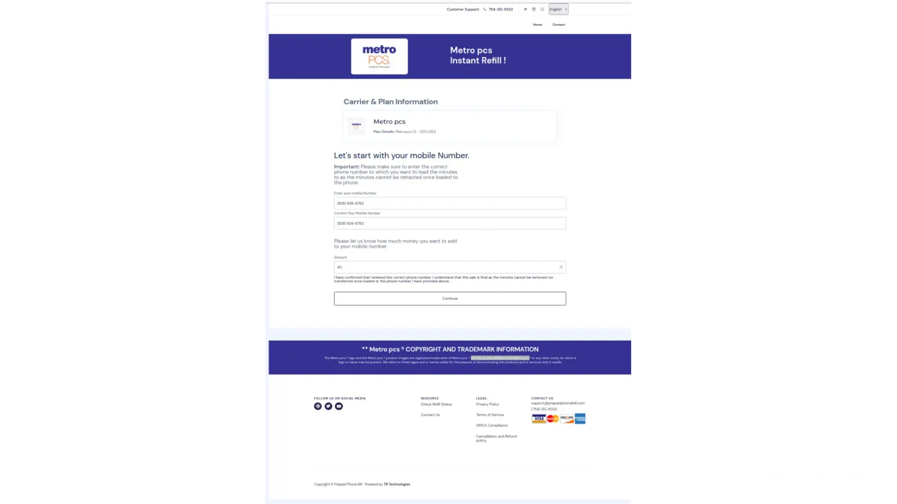 Desired outcome: For prepaidphonebill.com to either lose their authorization or to make it clear at the top of their page that they are not metro by T-mobile (formerly metro pcs).