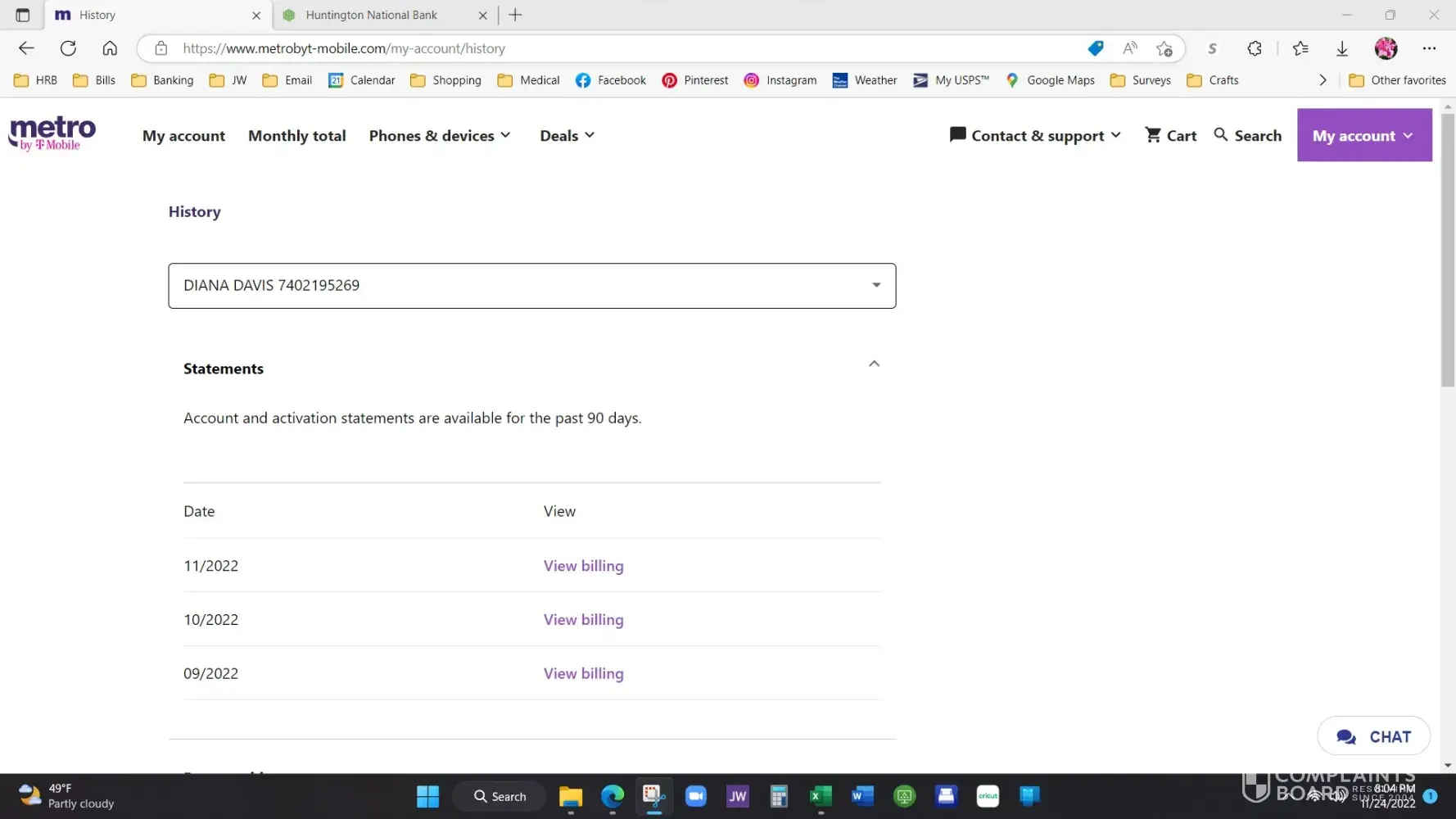 f. Billing statements are only available for the past three months. After realizing this, I began saving the statements starting with the October 2022 statement.