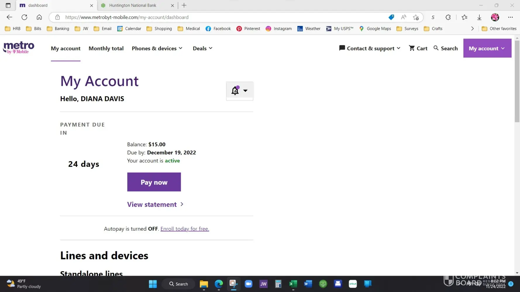 2. Metro online billing.