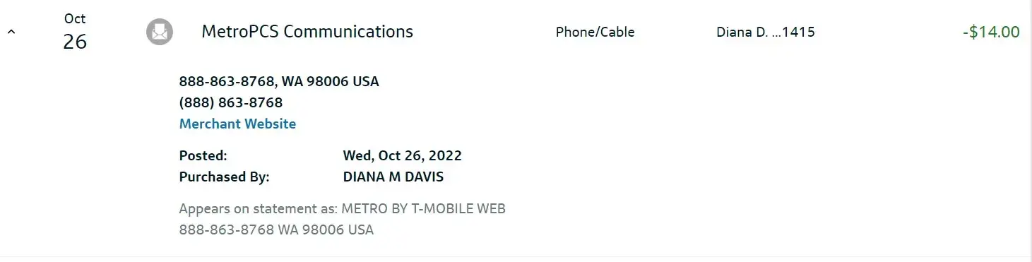 Lastly, upon paying, I immediately realize they are not metro-pcs and I called within 5 minutes (as soon as my cell service was turned back on) to cancel my payment. The company stated it is too late and they cannot reverse the payment.