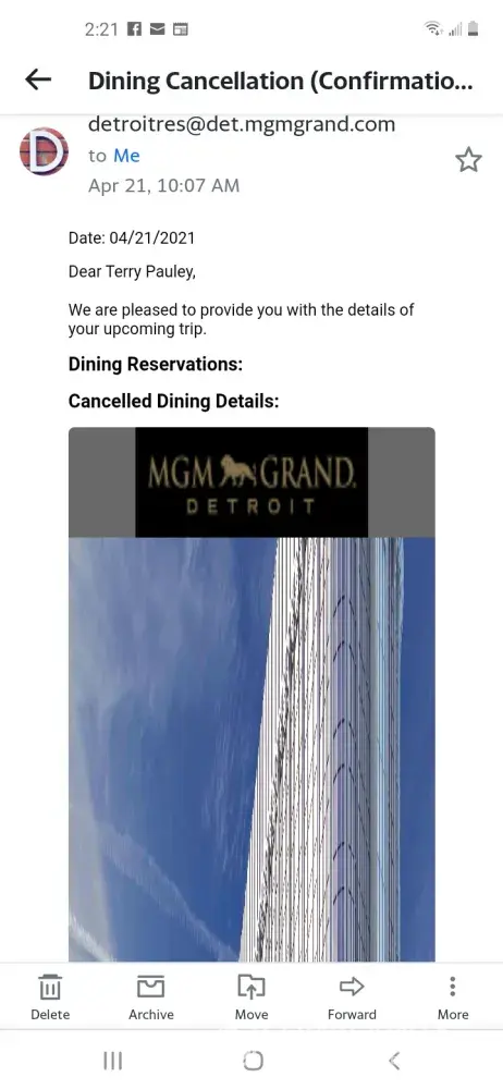 on April 20th I made a hotel reservation for mgm grand detroit. And also for dprime restaurant. Long story short. I had to cancel both reservations. I called shortly before 10am on the 21st to cancel the hotel reservation which was granted I thought. But also cancel my dinner reservation. Which I later noticed they sent me a confirmation email for the dinner cancelation. Never received one for hotel. Same phone call I believe same person handled both. Did the hotel one first. Anyways went there last night to find out I had express comps left because they used it for a no-show on room. Called vip basically told me I'm [censored] out of luck. Was hoping to get this comp back. Player id [protected]. Didn't even know about a confirmation email. Or I eould have looked out for one. Wondering how ball got dropped. And who was responsible on your end. Canceled hotel before dining on same phone call