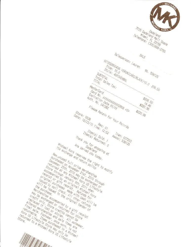 This email below was sent to Michael Kors yesterday and I have not heard from them yet. Please help me with this matter. On December 23, 2010 I purchased a pair of Michael Kors boots intended as a Christmas gift for my sister. On Christmas day we realized the boots did not fit. On December 26th I returned to the store location were they were purchased...