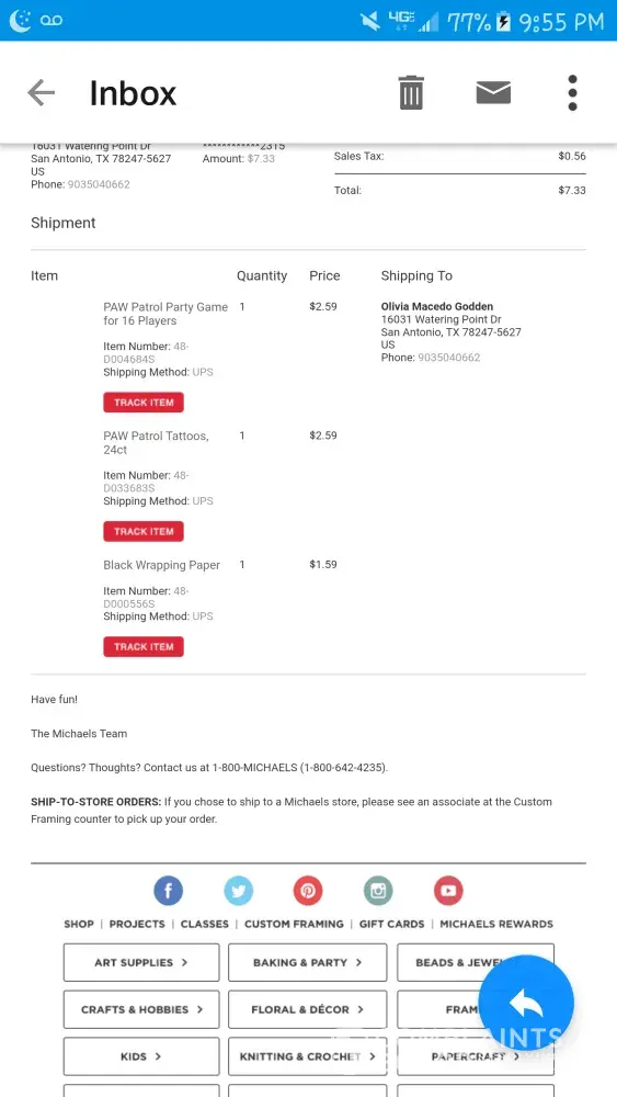 The day after I went in to the store, I received an EMAIL about how I should review my purchased items (meaning they had my email information that was tied to my order).