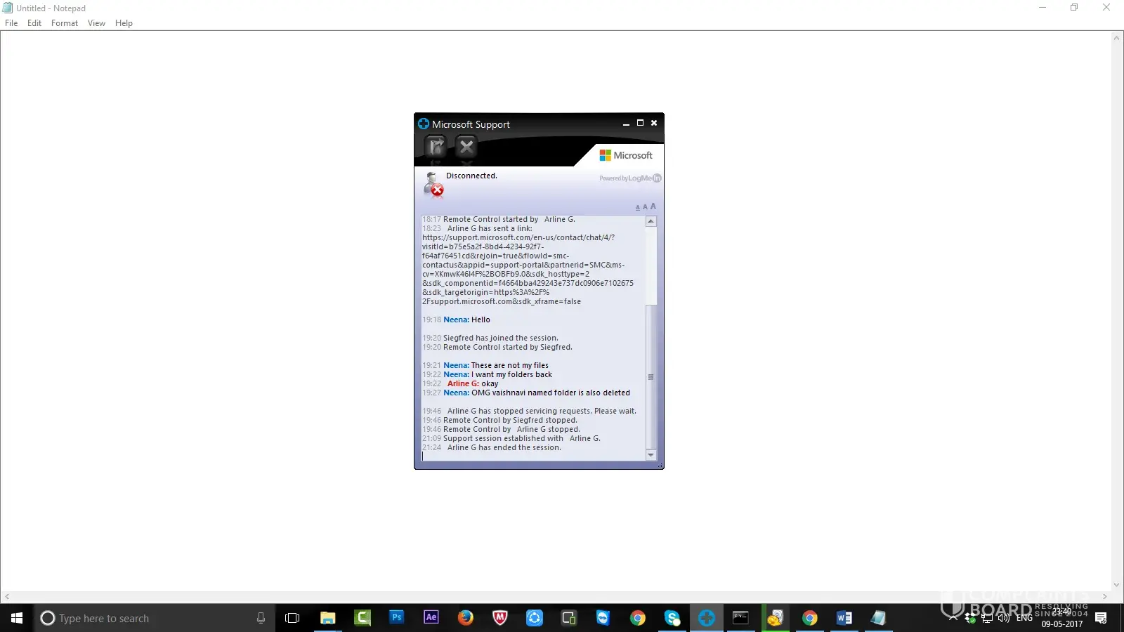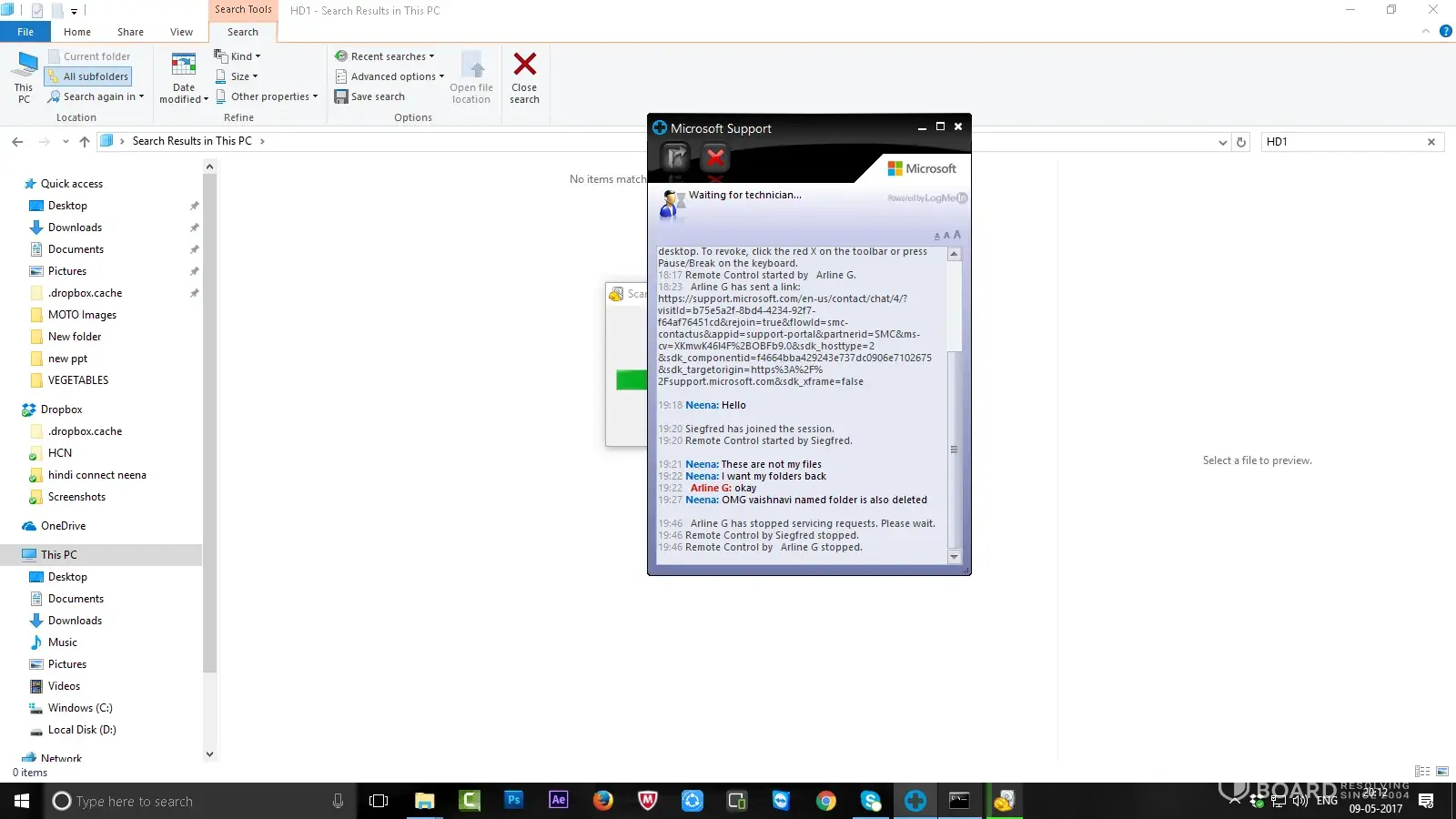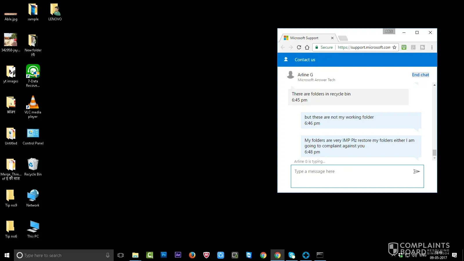 My name is Neena & I was taken support of technician for delete only 2 folders from desktop but he/she deleted my all very important working folders from my desktop. I am making complaint against ARLINE G who gave me technical support. I was unable to delete 2 folders from my desktop. That person who gave support, he deleted all folders from desktop through cmd prompt. I want to recover my all folders in my PC intimidate.