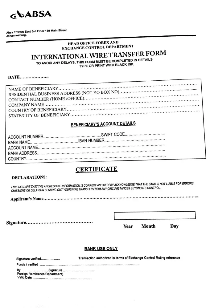 Absa Bank International Transfers Department |