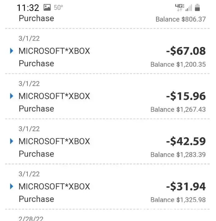 I have fraud changes on my credit card. And we don't have Microsoft Xbox. You guys need to straighten this out. The charges were for $58 $15 $67 $42 the purchase were made online with our card the card that was charged was Darren Dewitt