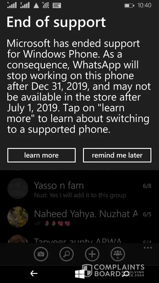 Good evening, I have a grave concern about a message I received on my windows cell phone device. I have attached screenshot of message. I have tried to contact MS support and apparently am declined support as my device is old and not under warranty anymore. It is very disappointing and very demeaning that I have to pay to get support. Please assist
