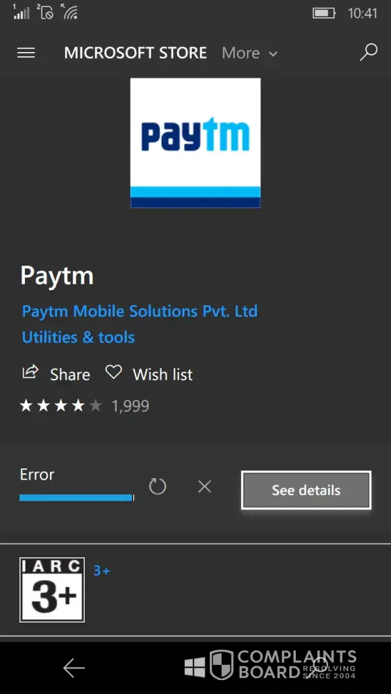 Hi, this is Satish Chary, I'm using Microsoft 540 (Windows 10) mobile 📱. Recently my paytm account was activated, suddenly it showing paytm is unavailable. Ok i uninstall the app & tried reinstalling it is showing Couldn't install. We'll try again later & it is showing error while downloading. Screenshot attached.