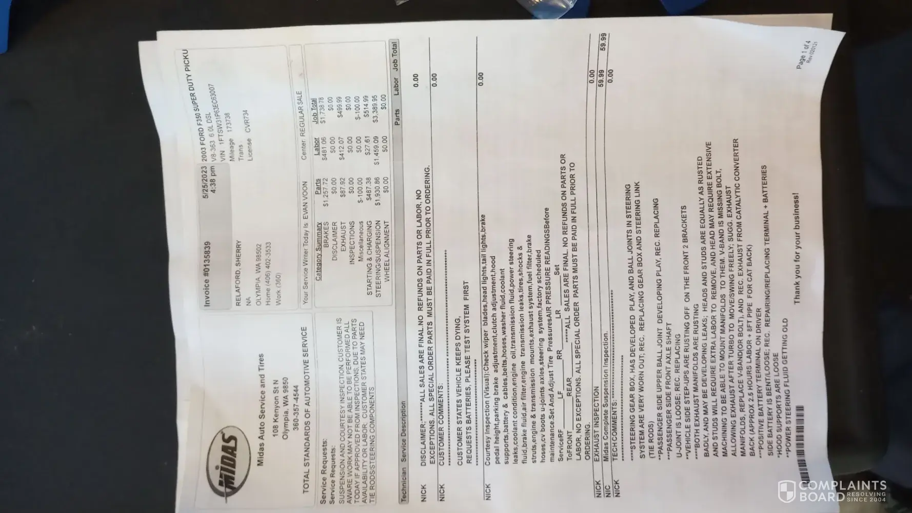 Midas Complaints Page 16 of 16