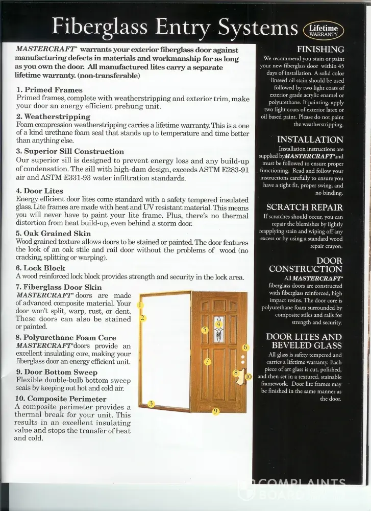 CAUTION, MASTERCRAFT exterior doors LEAK horribly! We bgt 5 french doors for new home, every single one leaked...even flew out rep from WI to fix...no go. NIGHTMARE dealing with Mastercraft. Learn from our expensive mistake. DO NOT BUY MASTERCRAFT...we purchsed thru Menards...they do not back their products. COntractors in our parts call mastercraft= mastercrap and mastershaft. So true! Purchase Jeldwyn, Pella, or Anderson. Run, run, run away from mastercraft.