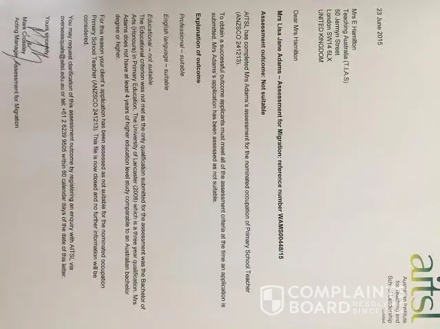 Can see that some people did get a decent service from these guys. My main issue is that I was lied to... consistently and over a long period of time. My wife's paperwork was even sent to the skills assessment body but then teaching australia failed to pay for the assessment to take place and then waited for it to lapse and get mothballed. This was despite me paying a specific amount above and beyond the initial fee which was for the assessment. Our money was evidently used for something else. By lying to me it meant I wasn't aware that our assessment had not been paid for until after the AITSL deadline meaning we have had to start all over again. Luckily the chap I emailed at AITSL was very clear about what we needed to do.