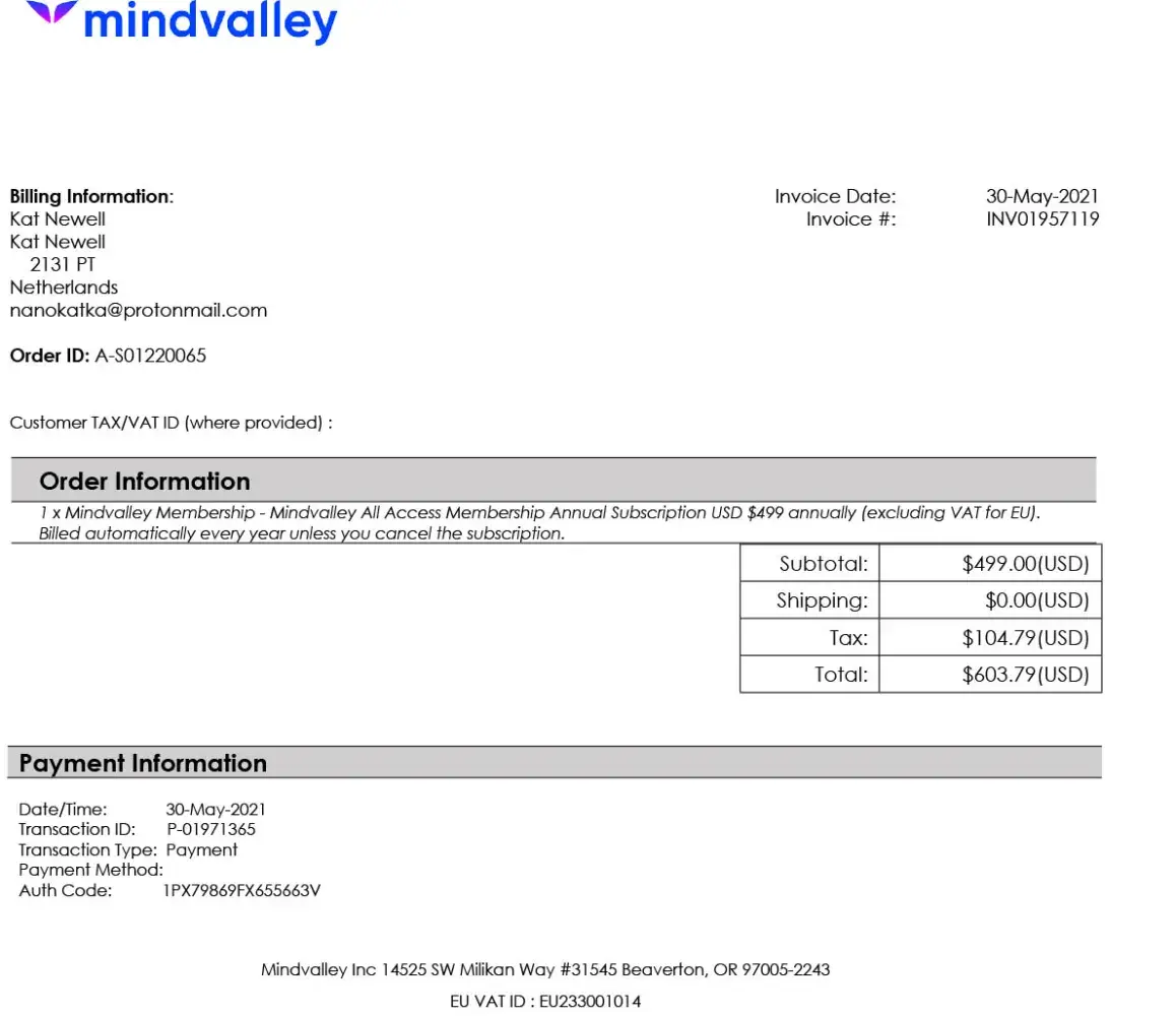 Yesterday, after working on this issue for more than an hour, and attempting to contact Mind Valley through their numerous support portals, I gave up, contacted my bank directly, and filed a formal dispute.