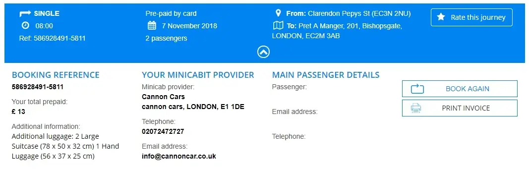- 07 Nov 2018 I am woken up at 02h18 by an email from minicabit - The driver for your trip has been allocated - details for driver and minicab operator (cannon cars london limited)