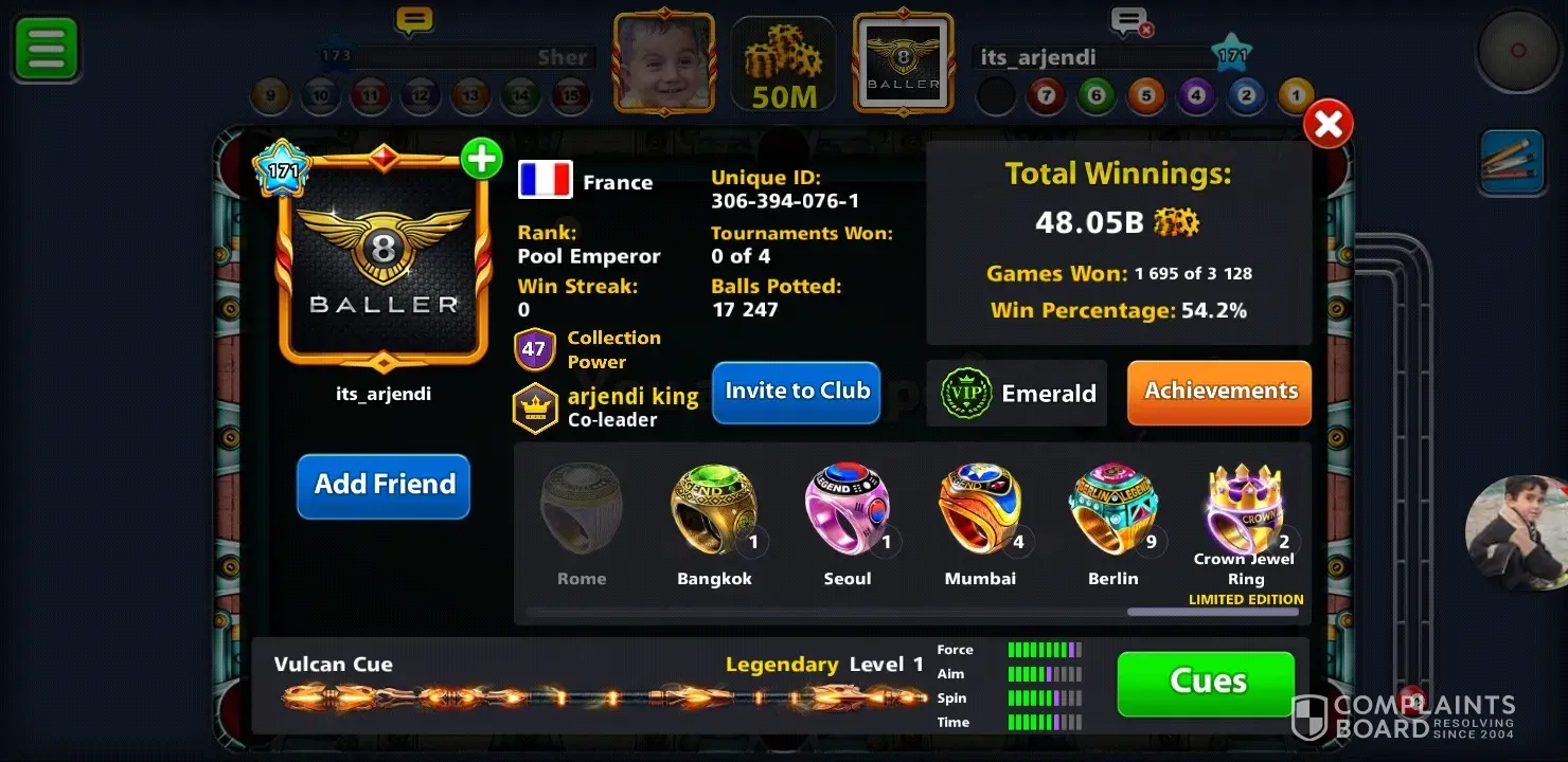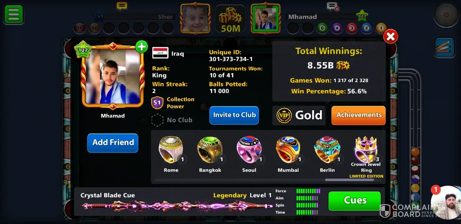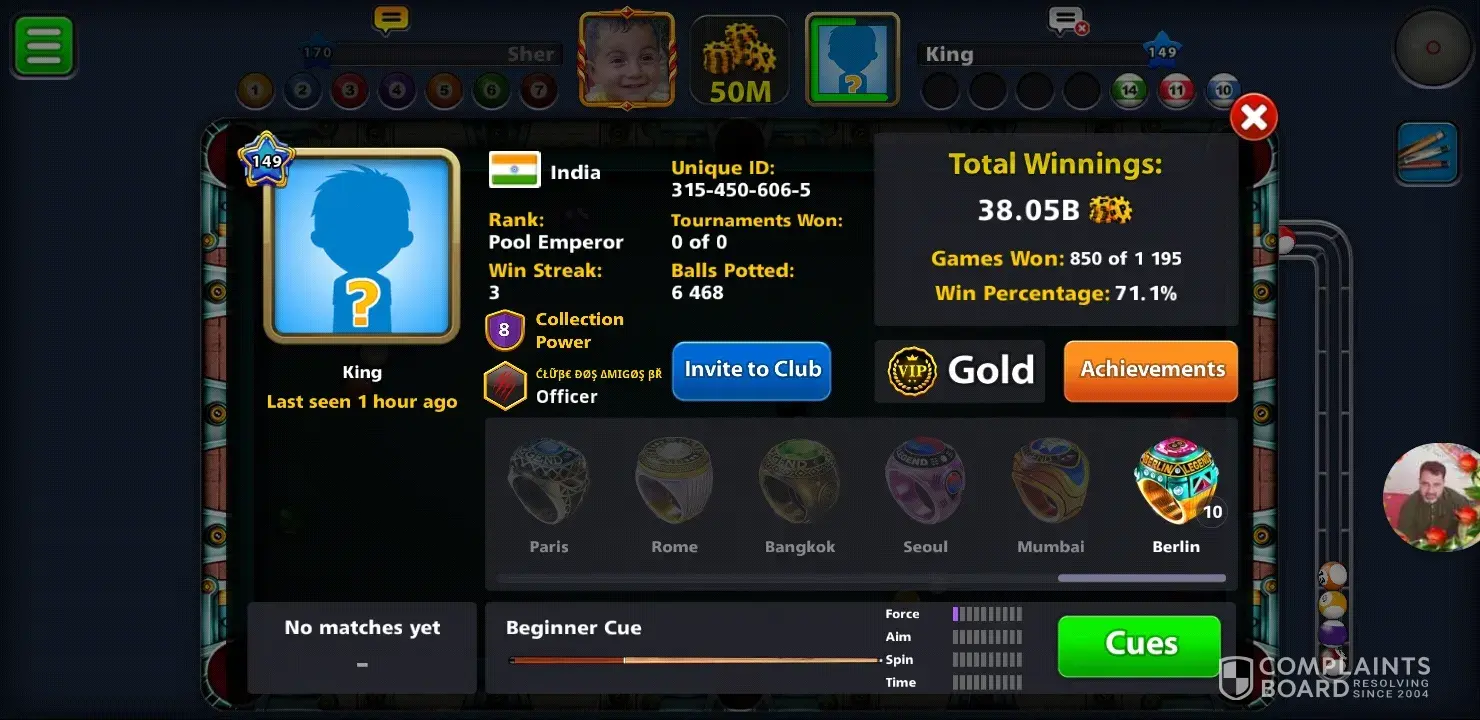 Now a days in berlin some hackers r ruining the game. They play random and frequent shots any where randomly but every time ball is potted. Even hardest snooker they play random shot and pot the ball. I have lost some games in my 2 separate accounts. Plz care your 8ball game, before it destroyed. Thanks. Hope you will tighten the hackers. 1 pic of the hacker account is attached. It's id is