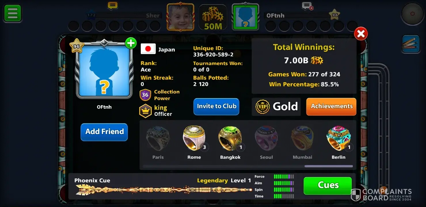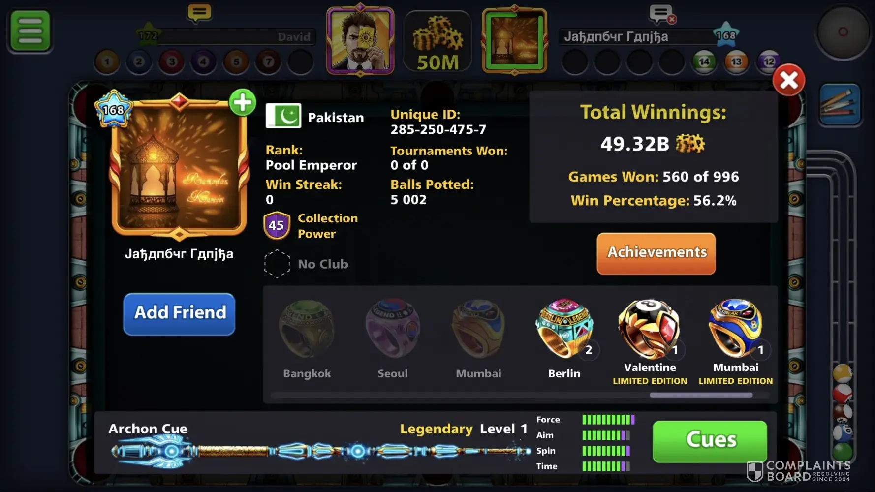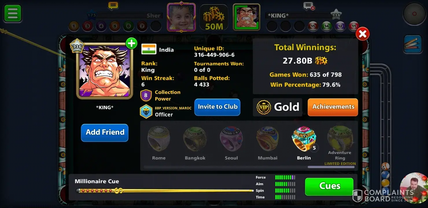 Now a days in berlin some hackers r ruining the game. They play random and frequent shots any where randomly but every time ball is potted. Even hardest snooker they play random shot and pot the ball. I have lost some games in my 2 separate accounts. Plz care your 8ball game, before it destroyed. Thanks. Hope you will tighten the hackers. 1 pic of the hacker account is attached. It's id is