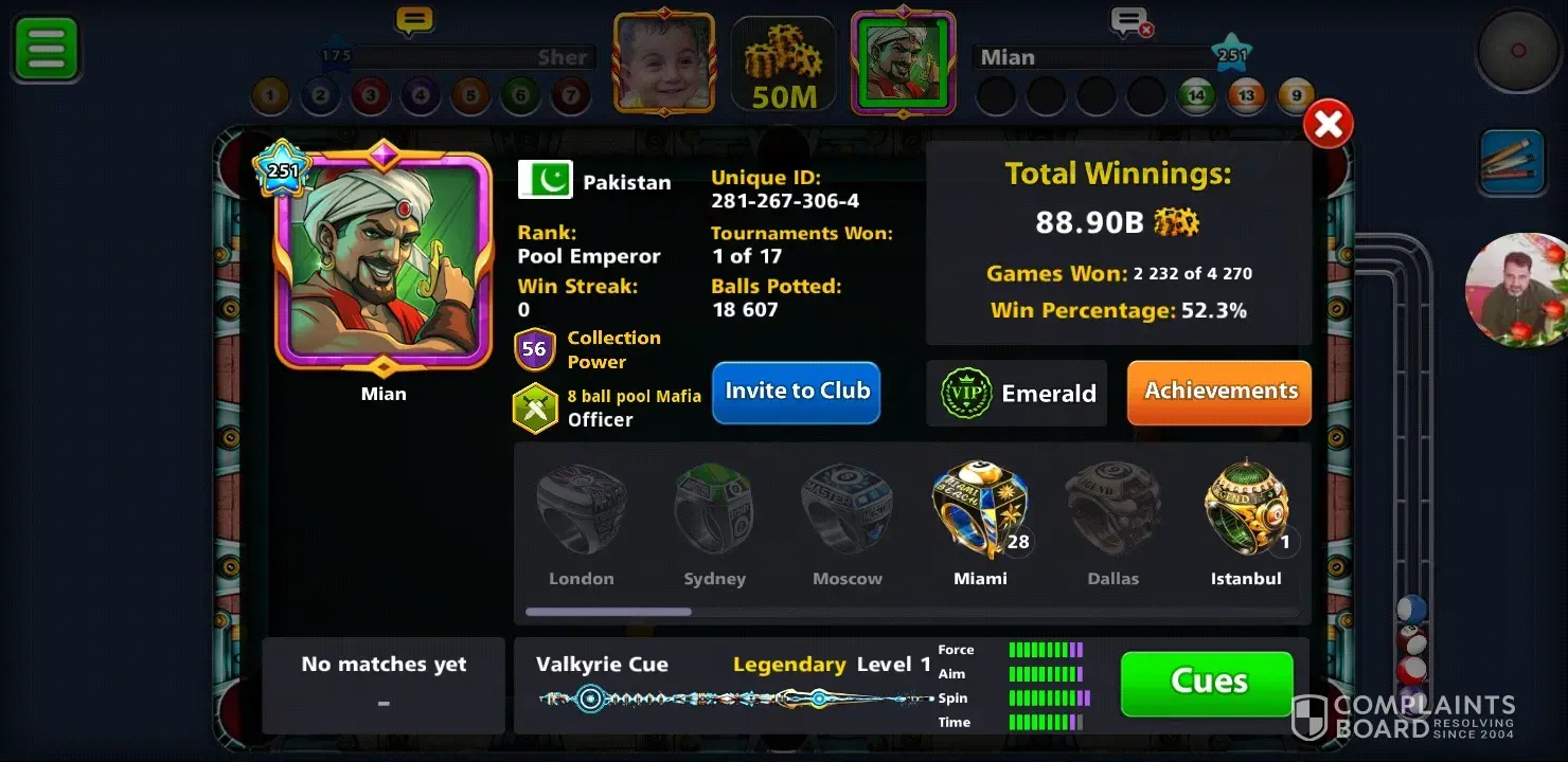 In 8 ball pool game don't show my winnings in my club and leaderboard and don't show the trophies kindly correct this isseu