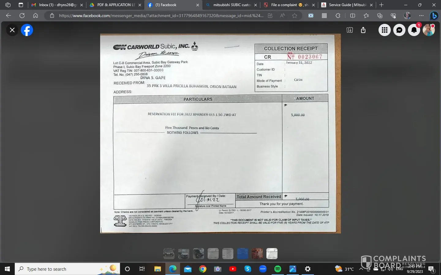a quick recap of my transaction to Mitsubishi Subic, I was approved Jan 2022 of an auto loan to RCBC then I was endorsed to Mitsubishi Subic as their partner, I have aided all the chattel to the bank and the reservation fee to Mitsubishi Subic of 5000 pesos to 2022 expander gls. Unfortunately, before I have to close the deal I was scammed and had financial lost through my bank accounts, I can't attend to all my stressors that time thus making my approval to expire, months pass and to cope up the bank just refunded the payments I made to them, I also ask your agent, If I can do the same because it's also a big amount then he said yes and will process it, months pass and when I follow up with him he is telling me to wait because this was a bit late refund and they will find the receipt book, I doubt it was already been disposed? months pass until last Tuesday when I made a follow up he said he forgot about it and was forwarded to finance .