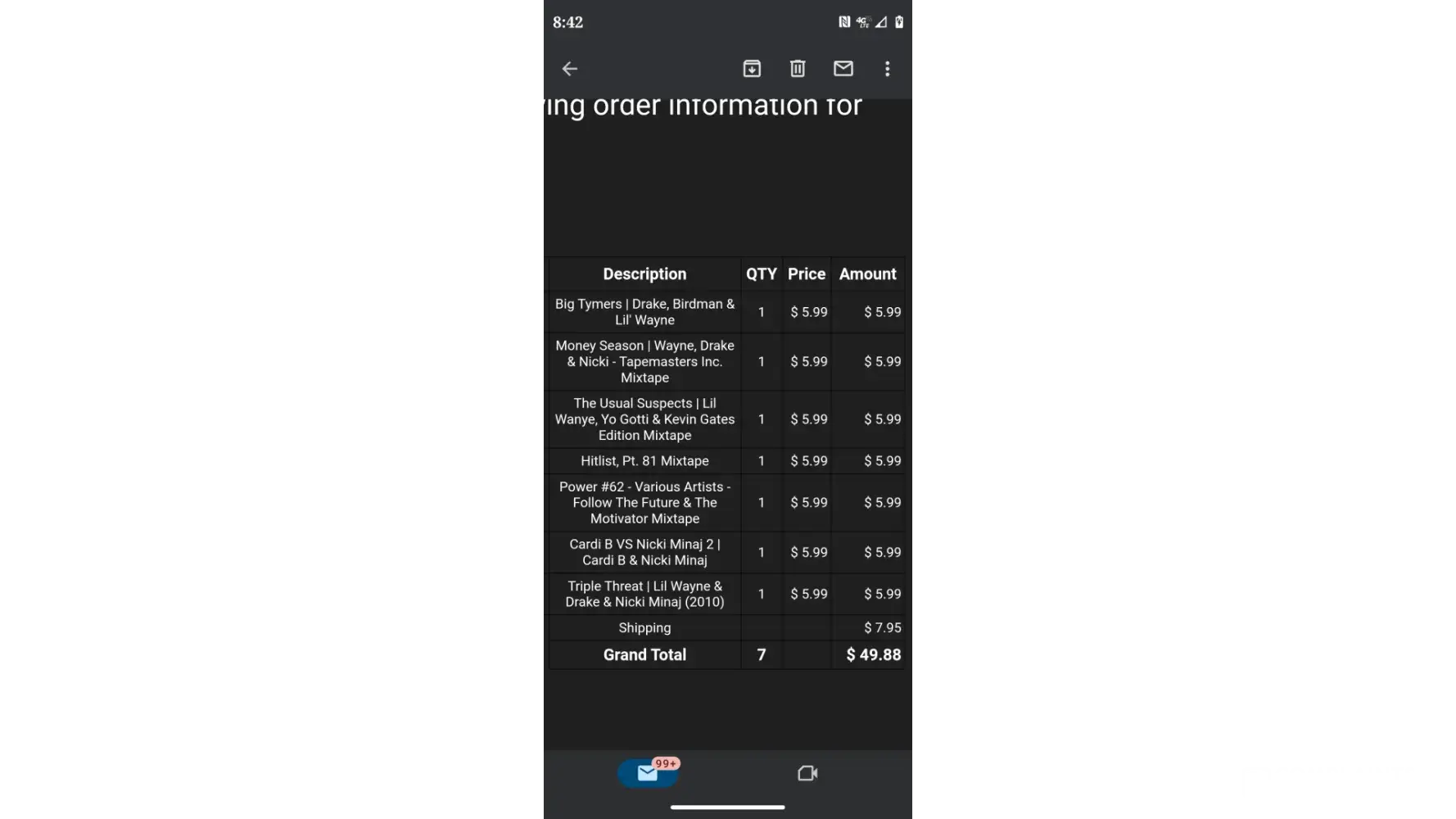 Hi, I'm Nathaniel Foster and I ordered 2 mixtapes on 01/24/2023 and I haven't received my order yet and my order number is 217038