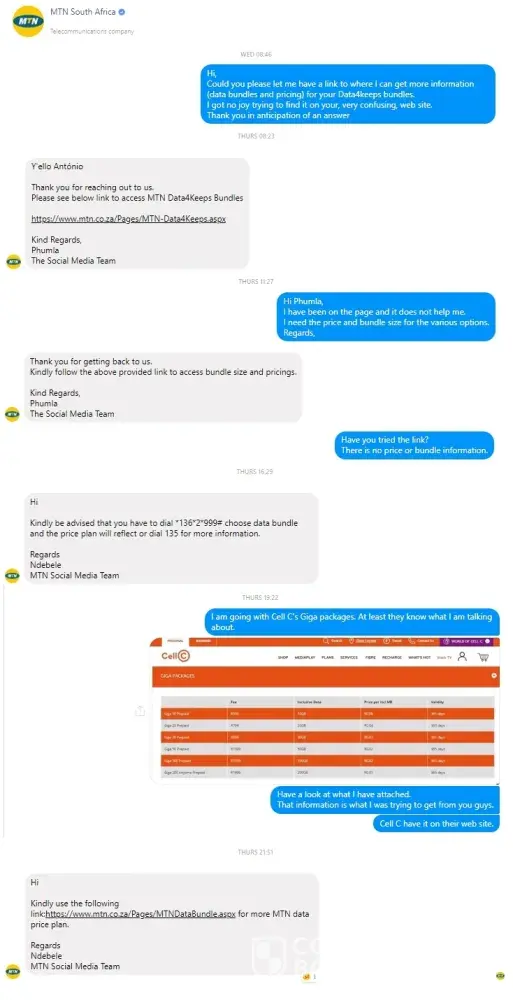 I then went to the MTN store in Woodmead. The poor guy working there tried to assist and was given the same run around!
