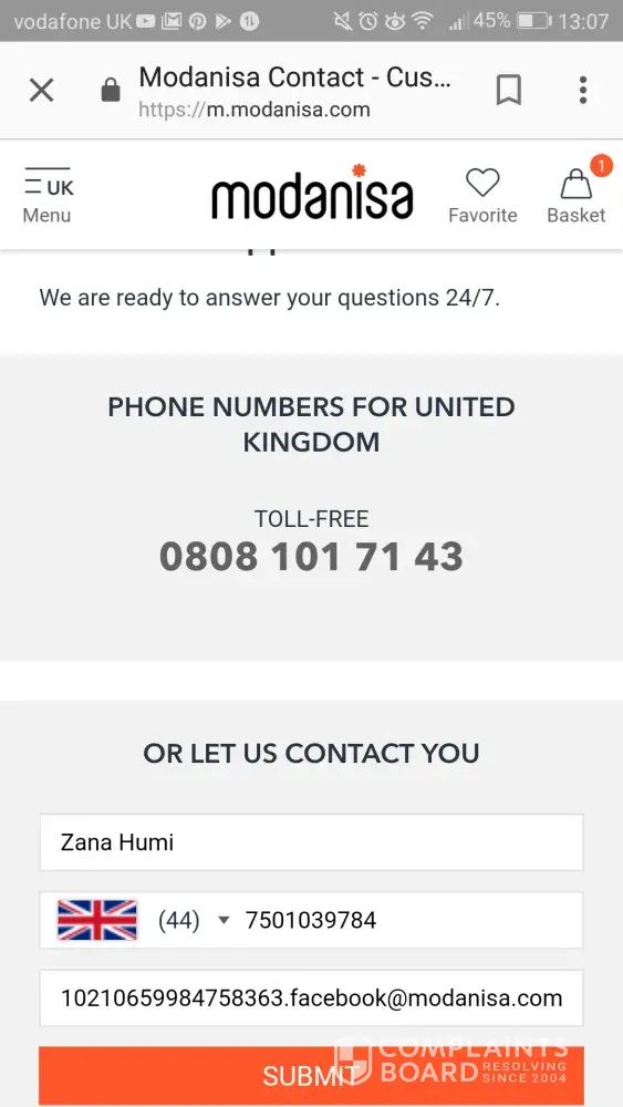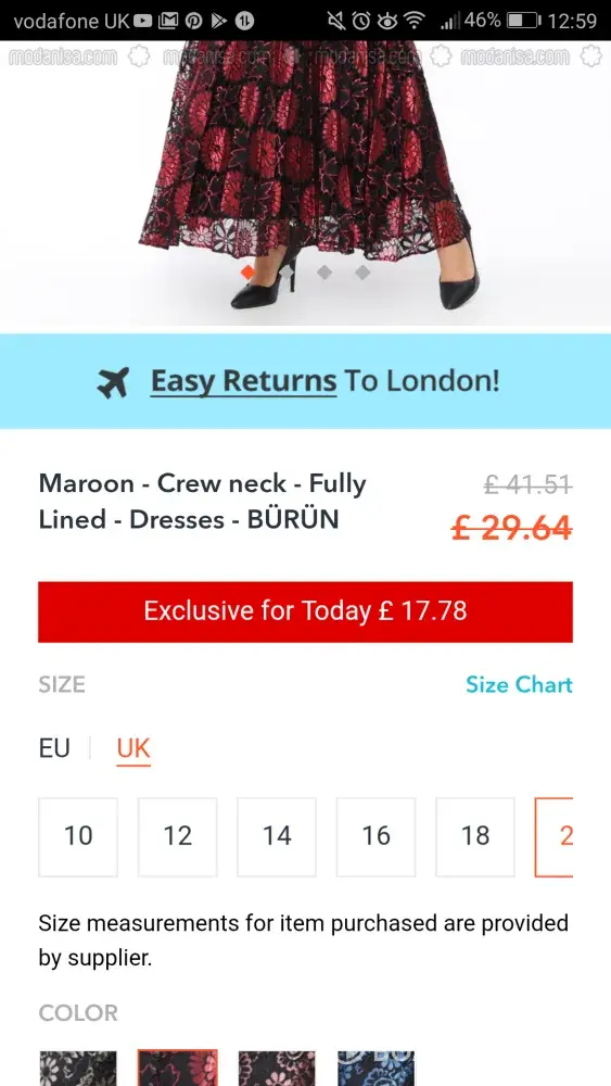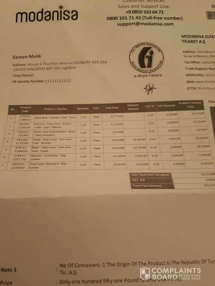 when I rang Modenisa he said I have to email them get a return slip emailed back to me to return within the UK. I was furious as I had returned previous items costing me £62.04 to return direct to Turkey as I thought I would run out of time.