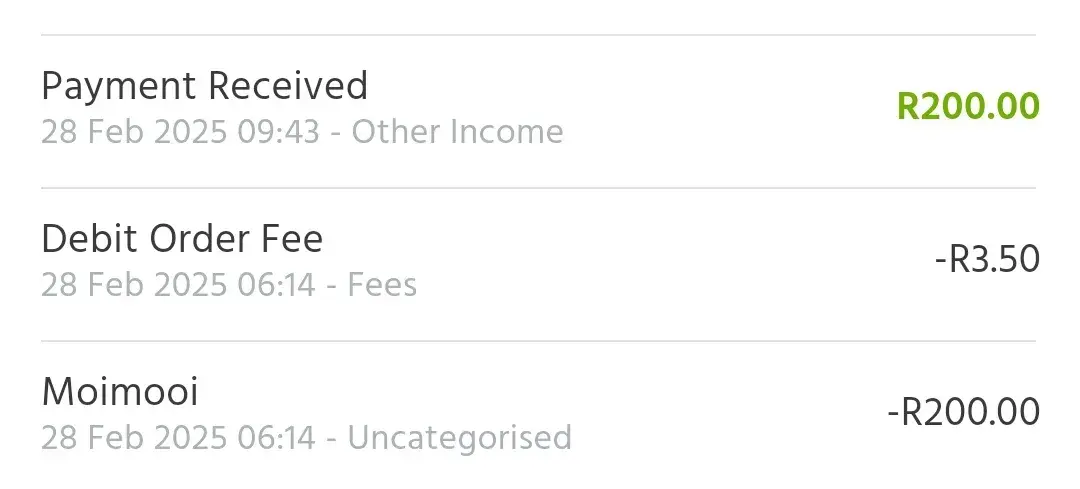 28th February 2025 they tried to deduct a R200 from my account but I disputed it. No contact from them since January 2025.