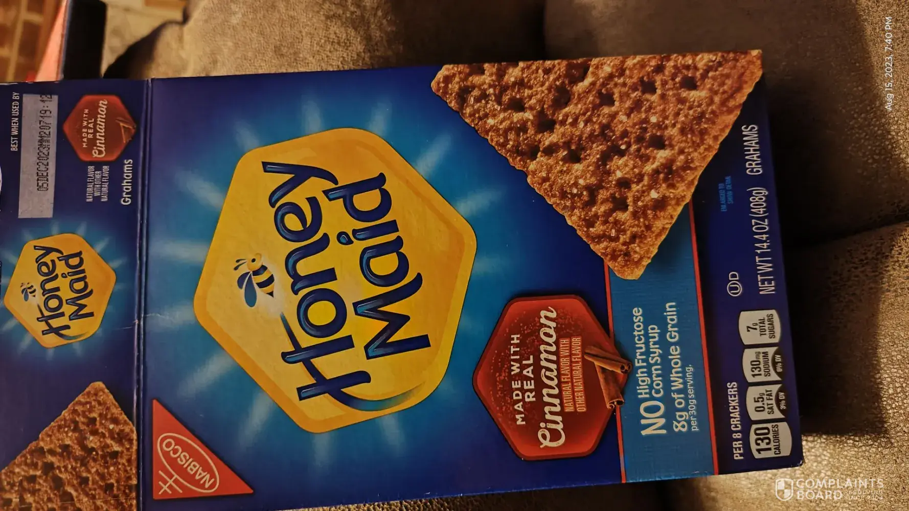 I purchase a box of Honey Maid Cinnamon Graham Crackers, 14.4 oz Family Size Box during the end of June 2023. I open the box today 8 /15/23 and was so disappointed with the product. There was no cinnamon on any of the crackers. You actually had to take a picture or rub your fingers across the cracker to notice there was no cinnamon applied. I paid $4.69 plus tax for a plain box of graham crackers that was supposed to have cinnamon on them. Nabisco's quality has really gone down the drain. This is the second time I have purchased this product and the first box was the same way. Now Nabisco is selling sub-standard products with high ends prices. I purchased a store-brand product of cinnamon crackers and they had more cinnamon on one cracker than the entire box of Nabisco Honey Maid Cinnamon Graham Crackers had. The Nabisco Company should be ashamed of sub-standards, and low-quality products they are making. This is not the same company I grew up on. I have provided pictures to show. Maybe the batch that had 05DEC2023MM120719:12 went unnoticed for cinnamon.