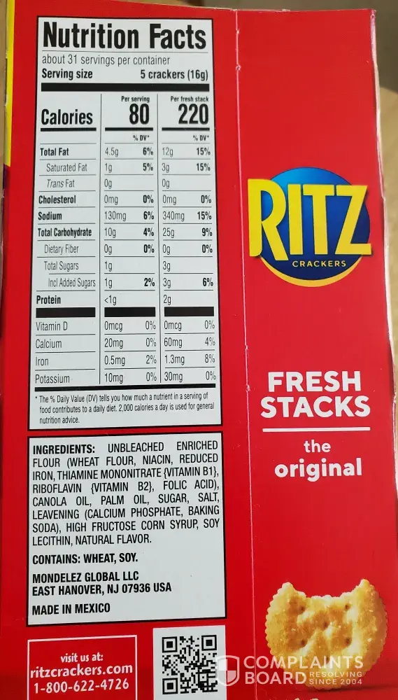 Desired outcome: Assurance that Ritz crackers are safe to eat