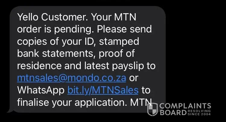 25/03/2022 - started at 13:15 receiving sms's from MTN regarding a contract I did not apply for