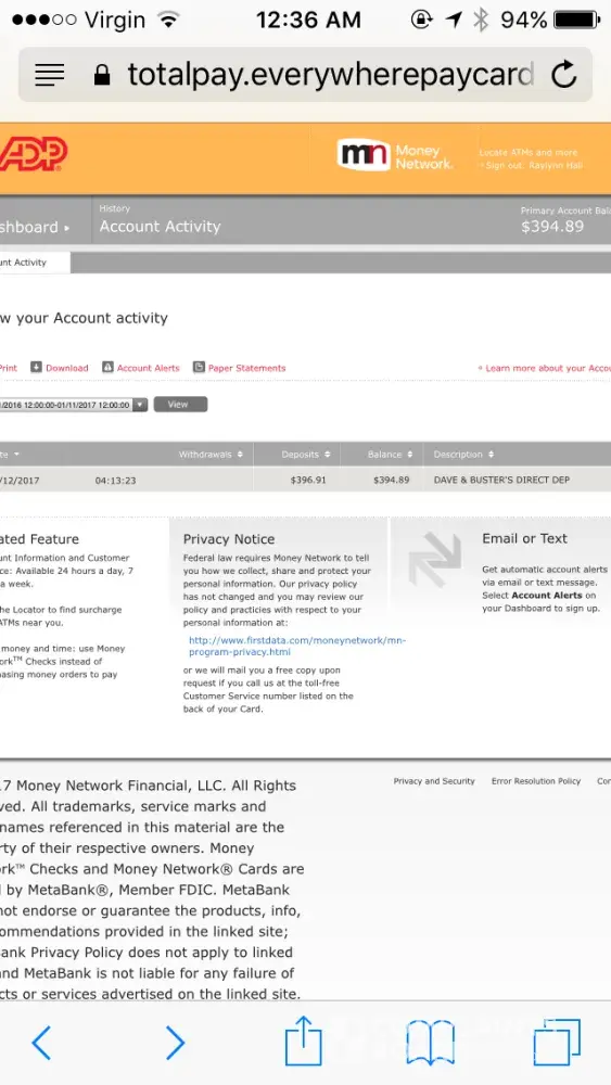 Money Network Financial / EverywherePaycard.com my account
