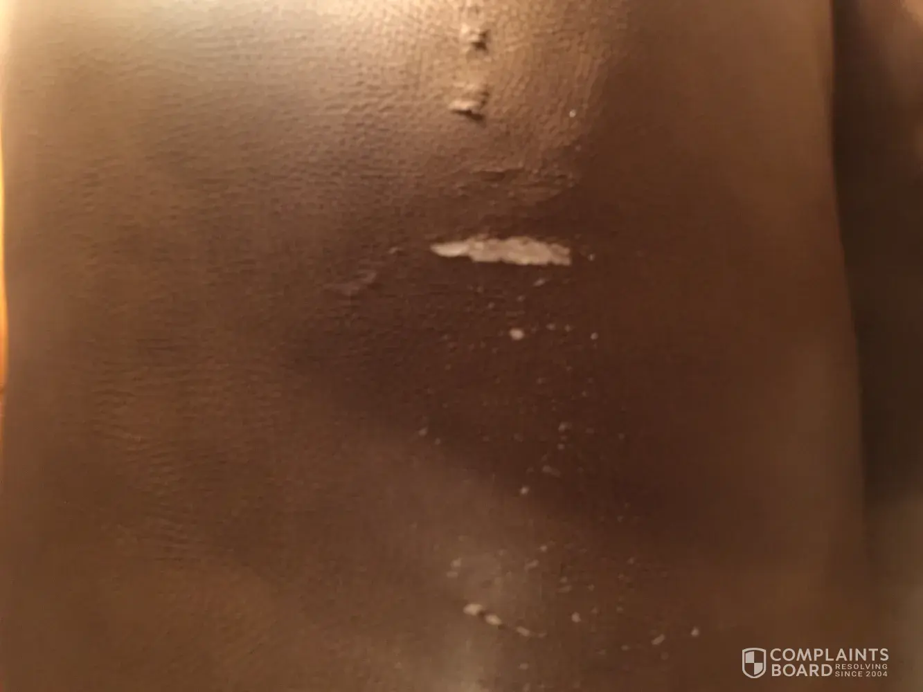 I requested to speak with a supervisor, which wasn't much help either. The supervisor, Heidi #7607, in South Dakota finally answered the phone after being on hold for 9 minutes. She was "aware of my circumstances" - she never once asked me what happen to my couch. She went directly off of what the representative had told her. She then told me because of the poor quality of the material there are probably cracks because of "average wear". I asked her how could she know that without having seen the couch? Not to mention, we sit and lay on the opposite side of the couch which has no punctures, rips or cracks. She literally was silent after I said that.
