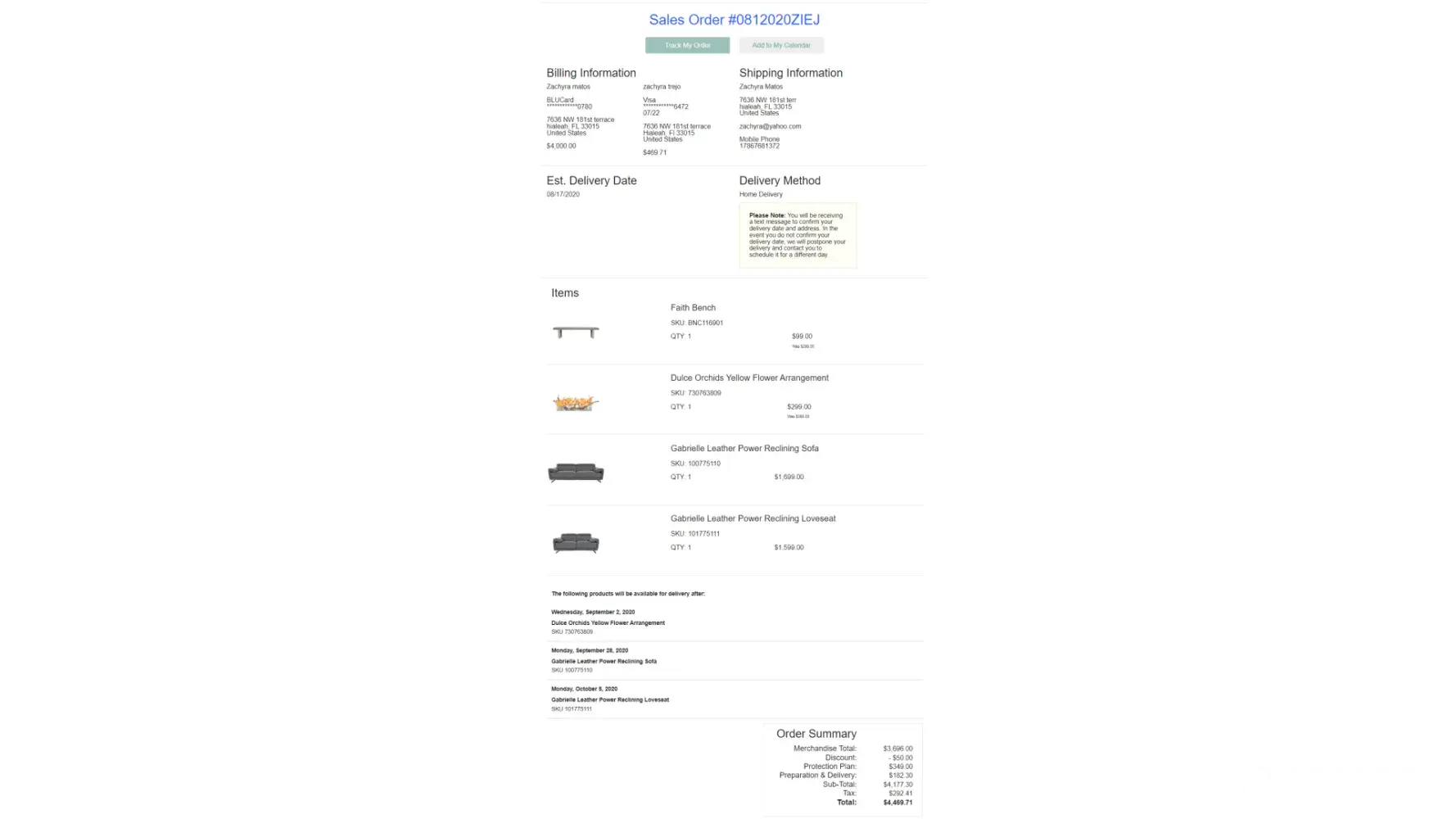 DO NOT do business with this company. If you buy furniture from a store who uses this company DO NOT buy the protection plan, as you will be throwing your money away. Next to the BBB, and then to every furniture store in town to spread the word about these scam artists.