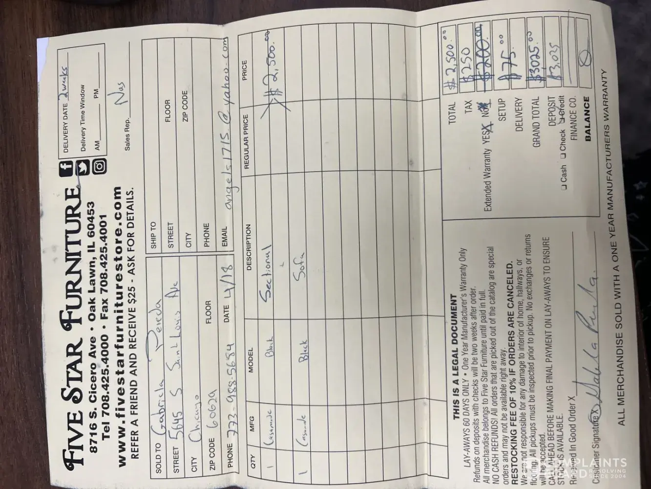 I purchase my furniture from cardis and i called them to have a stain removed from one of my sofas. I have been waiting since september and every time you call customer service some lady who never answer the phone, who works from home and has kids yelling in the back ground. also the line is busy all the time. And this line is a black jack line! REally a business that cant afford to pay for a landline. The service technicians are just as rude and the person who answers the phone, hey are just a big scam!