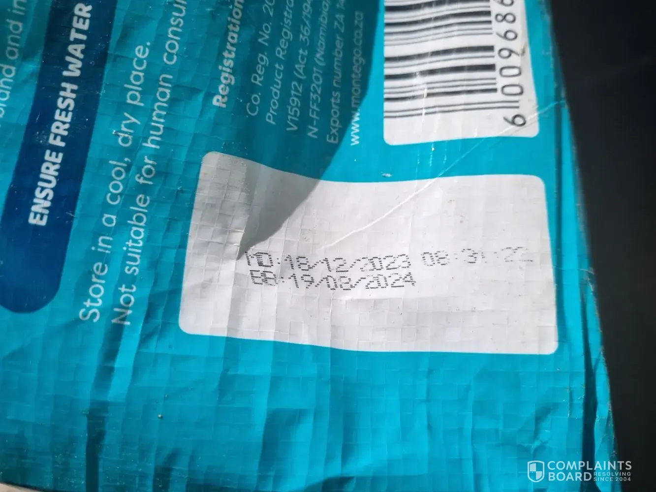 I had to take a 25kg bag of Montego large breed puppy back to the shop as it was moldy, the sales person said they new about the problem and had received an email from Montego regarding a batch from 15 August. The shop replaced the moldy bag with another bag off the shelf which I opened in the shop and it too was moldy. when I checked the date it was from the same batch and was the last bag in the shop. They sent me to another of their outlets and the food was replaced with a bag from a different batch which was fine.