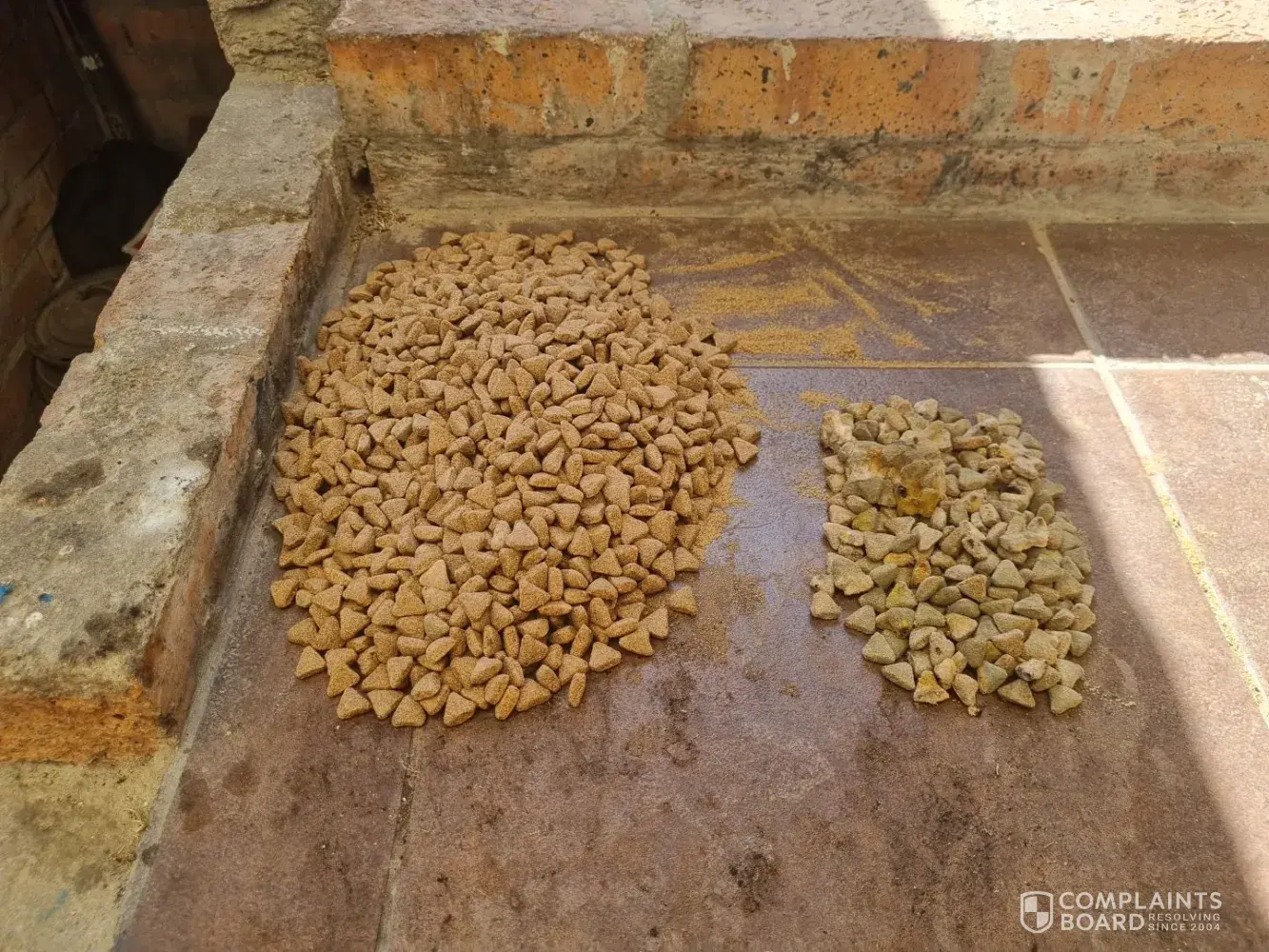 haai i dissagree with the complaint i have two ### a boerboel and a pitbull since i starterd using montergo classic i have the the best result ever in terms of the size, coat montergo is the best and i only feed my dogs once a day.