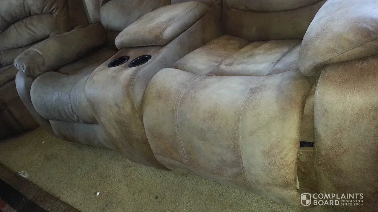 On sofa seat cushions are sinking also on love seat. On foot rest staples came thrue and tear the fabric. The supervisor Javier from visalia ca. From the warehouse give me7 days to reselect. Well I went to reselect but the information wasn't on the system so, I call they supposed to call me back but nothing. So, I decide to go to the store to see was going on. So they did I talk to the manager and he tell me to look and they will do the rest. Finally I found different sofas and went I was ready they call Javier to let him know was going on. Javier talk to me and say. According to get the new sofas I need to clean and get proof of cleaning sofas. so I can get the new ones. But they haven't respond me.
