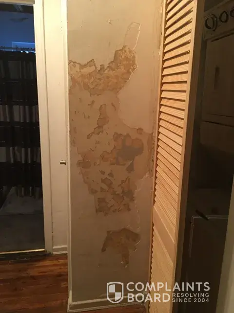 We insisted that they move out the washer/dryer and of course there was a mold outbreak. My husband came back the next day when the workers were there "cleaning" the mold off the walls with a can of cleaner clearly marked "not recommended for cleaning mold". My husband insisted that this was not acceptable...so they ripped out the ceiling and walls in these areas and re-dry walled the same day without letting it dry inside the walls. So, I'm not sure why we were surprised when we saw mold growing again in the closet 3 weeks later on top of the new dry wall.