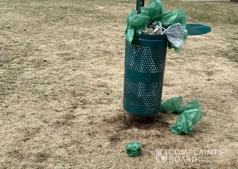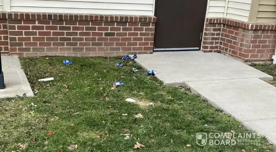 The yard, garbages and areas are absolutly a disgrace. like a college campus. the beer cans right in front of doorways, garbage around dumpsters... always. dog poop, cigarette butts.