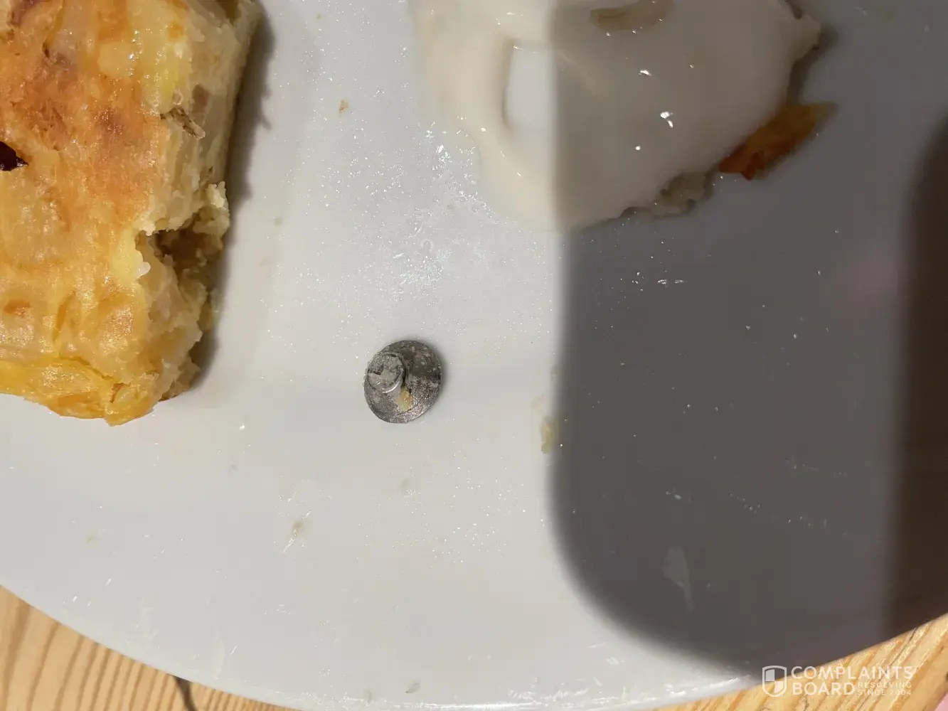 I would like to make a complaint. I was eating a ready to eat Spanish tortilla that I brought from your Bletchley store, and I found a broken machine bolt inside it. This is absolutely unacceptable. Please file my complaint and get back to me as soon as possible with a solution. Had it of been a child or had I of actually bitten into it, the outcome could of been much more serious.