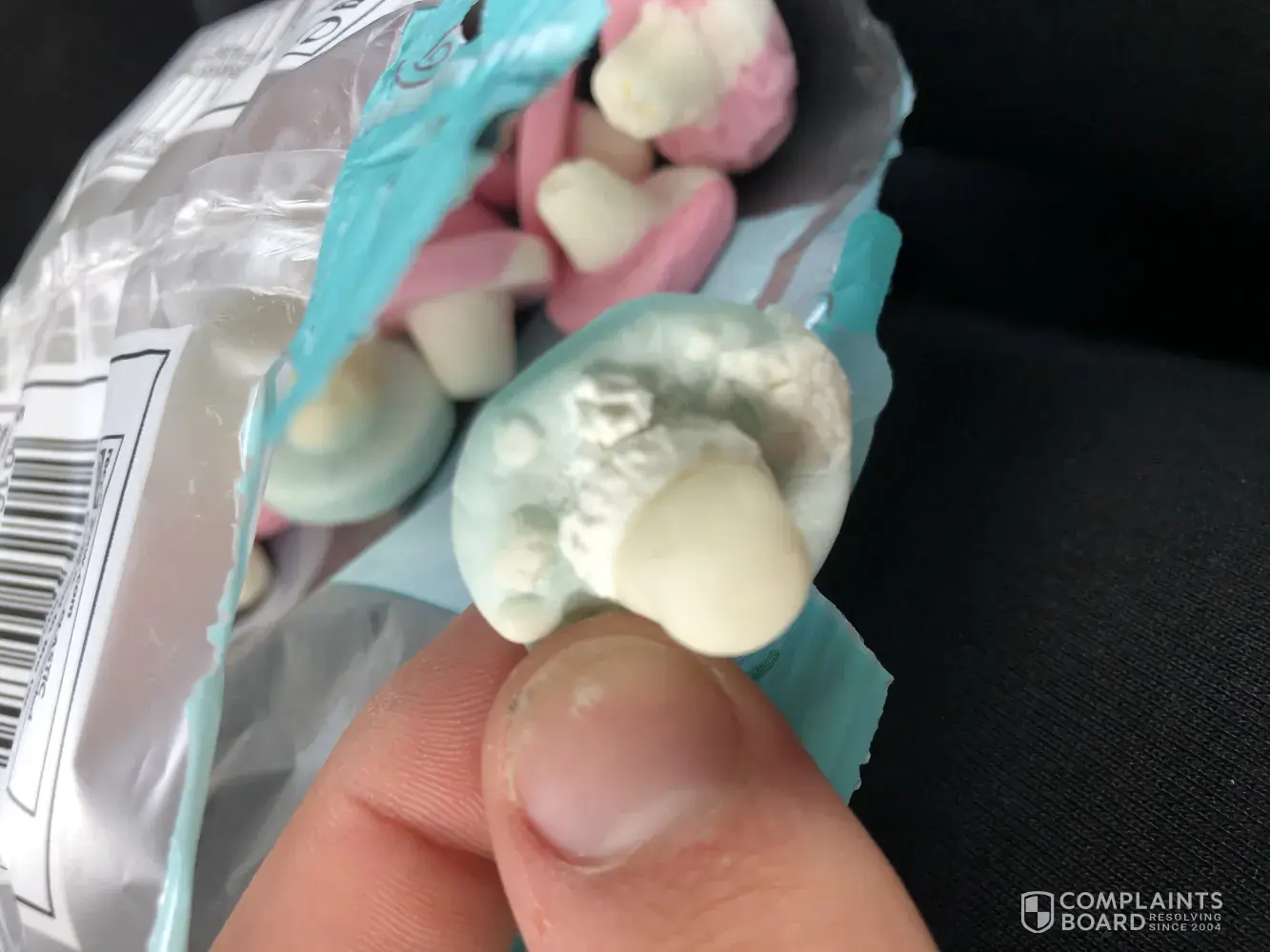 I am filing a complaint as I am extremely unhappy with my packet of foam mushrooms that I received. Whilst eating them I noticed that several had hard white lumps of something on, which I actually couldn't eat. Therefore about 1/3 of the bag was wasted and had to go in the bin, and I am therefore not getting my money's worth that I paid for. I hope you can resolve this, so that I can continue to purchase the sweets from Morrison's as at the moment I am not at all satisfied with what I have bought.