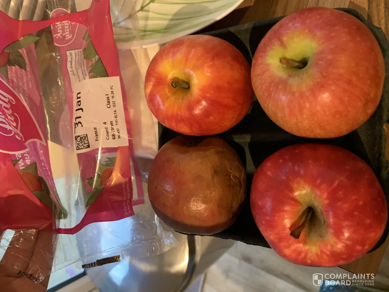 On my weekly shop this week I purchased some Pink Lady apples, when I got home to take them out of the packet I realised one of them was bad/ black in colour. This was really disappointing as the apples were in date and are not ‘cheap' apples. I would appreciate some form of compensation for this as I am a frequent customer of Morrison's.