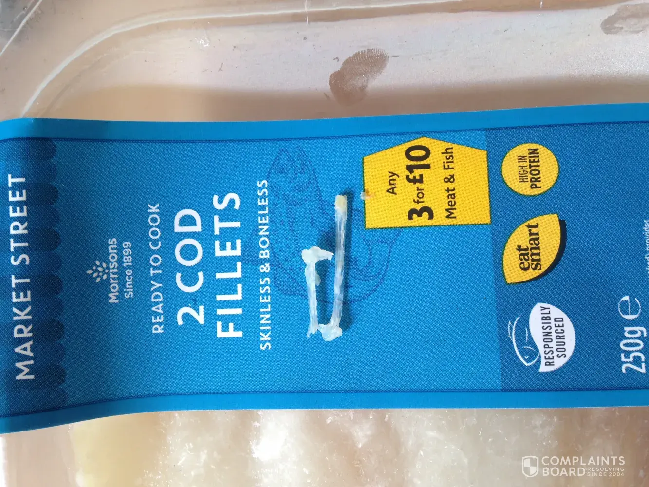 (Item purchased 8/10/18, frozen for the week, cooked and served last night and again this afternoon) Hello, I need to draw attention to the fact that one of these cod fillets contained 2 large, sharp pieces of fishbone- 1 piece measures 1.5cm, the other 3cm. I wouldn't complain on behalf of myself, but the cod was used for making fishfingers for my 20 month old and this is a regular ingredient that we use. We are normally very pleased with this product. Thankfully, I happened to have this piece on my plate instead of hers, but as you can understand, this could've been very dangerous and painful for her or any young child. Please let me know what steps of action you intend to take to prevent this from potentially happening again to us or someone else, thank you.