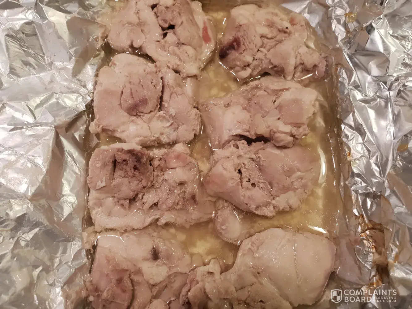 I cooked the chicken in foil with no oil in the oven and when I unwrapped it the chicken was absolutely swimming in water which was way above the amount I would have expected.