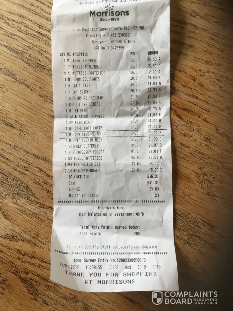 This is the 3rd time I have raised this complaint but so far I have had no response from Morrisons.
