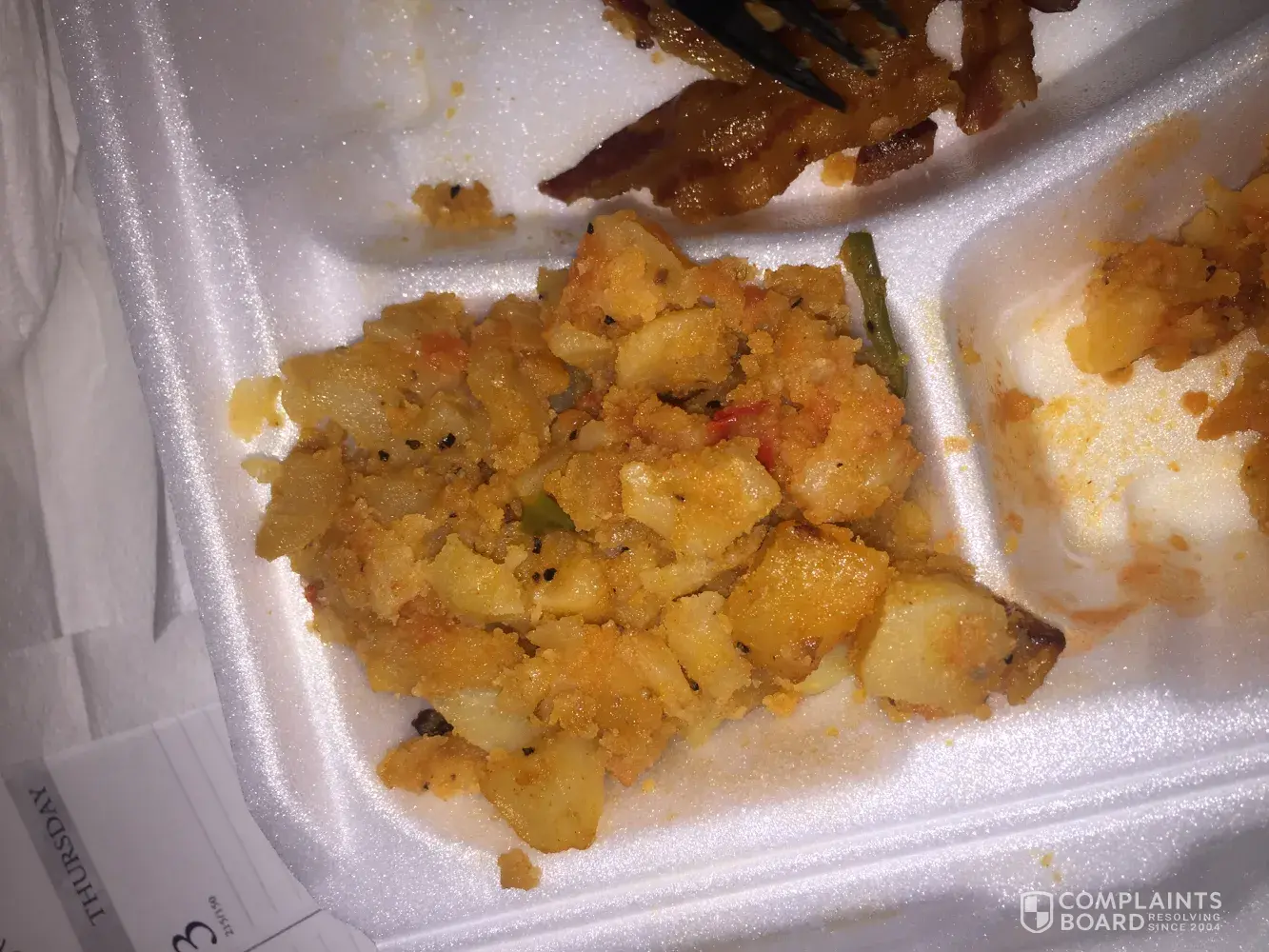 I work at Northside Cherokee Hospital in Canton, Ga. The home fries are chopped up potatoes that are cooked as if going into potato salad (soft & mushy) ; as the week goes on, the potatoes are orange (something is added). As an employee of Northside, I feel that better food preparation could & should be provided. It is an embarrassment to the hospital to serve this quality of food.
