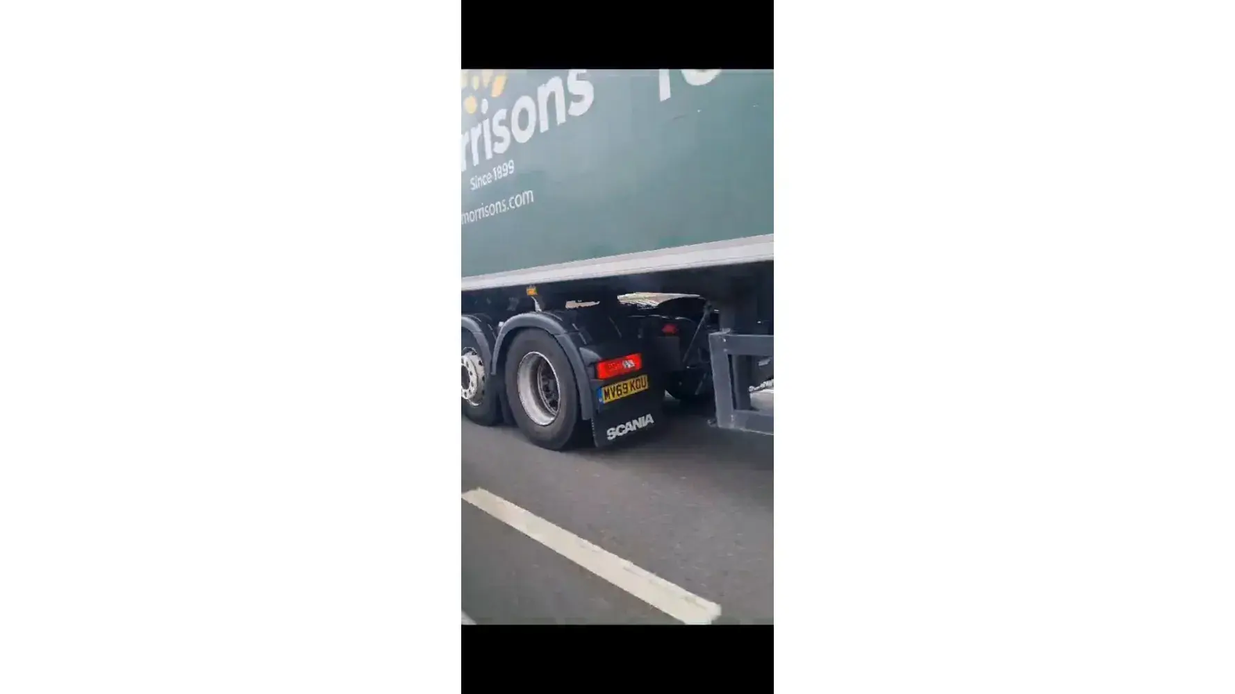 The registration of the Morrisons truck was MV69 KOU. This driver isn't fit for the road and is an accident waiting to happen. He should be removed from the roads for the safety of the public.