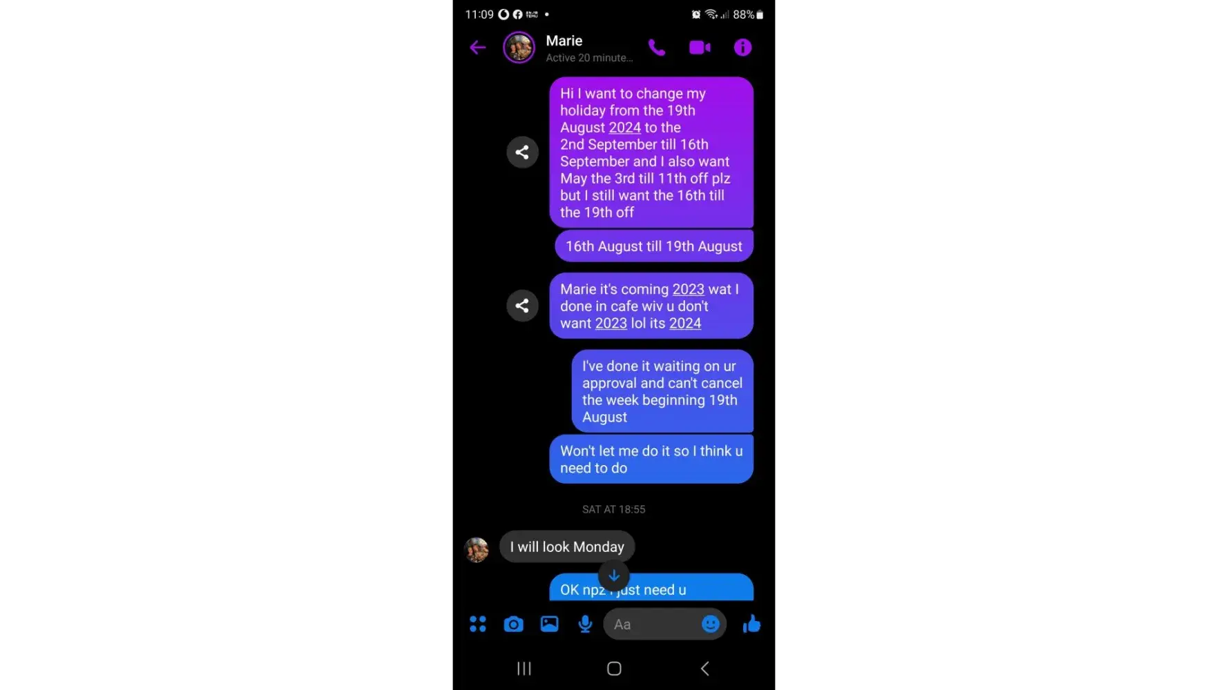 Hi I'm gutted I have to do this but I have to do this as I'm a employee off morrisons and I feel like I'm being bullied and victimised by my cafe manager I had a meeting with my store manager and explained about my situation at home what is personal and I asked for 8 hr shift thats one day a week and the store manager agreed but I said I can only do to a certain time because of home commitments but my cafe manager who is Marie Upton has completely ignored my situation and that's why I have to put this complaint in plus I said to my cafe manager I need to book my holidays for next year for my 50th and she OK just add it to my requests I did and she declined them saying that month is fully booked I said but there shudnt be a issue because I only do 1 day a week but she still ignored me knowing fine it's been booked and paid for its all the time I ask for something she doesn't acknowledge it but when she dos go to acknowledge them she said no and puts me on other dates but when other cafe staff asks she accepts them so I'm not happy and it's causing me to go back into my depression